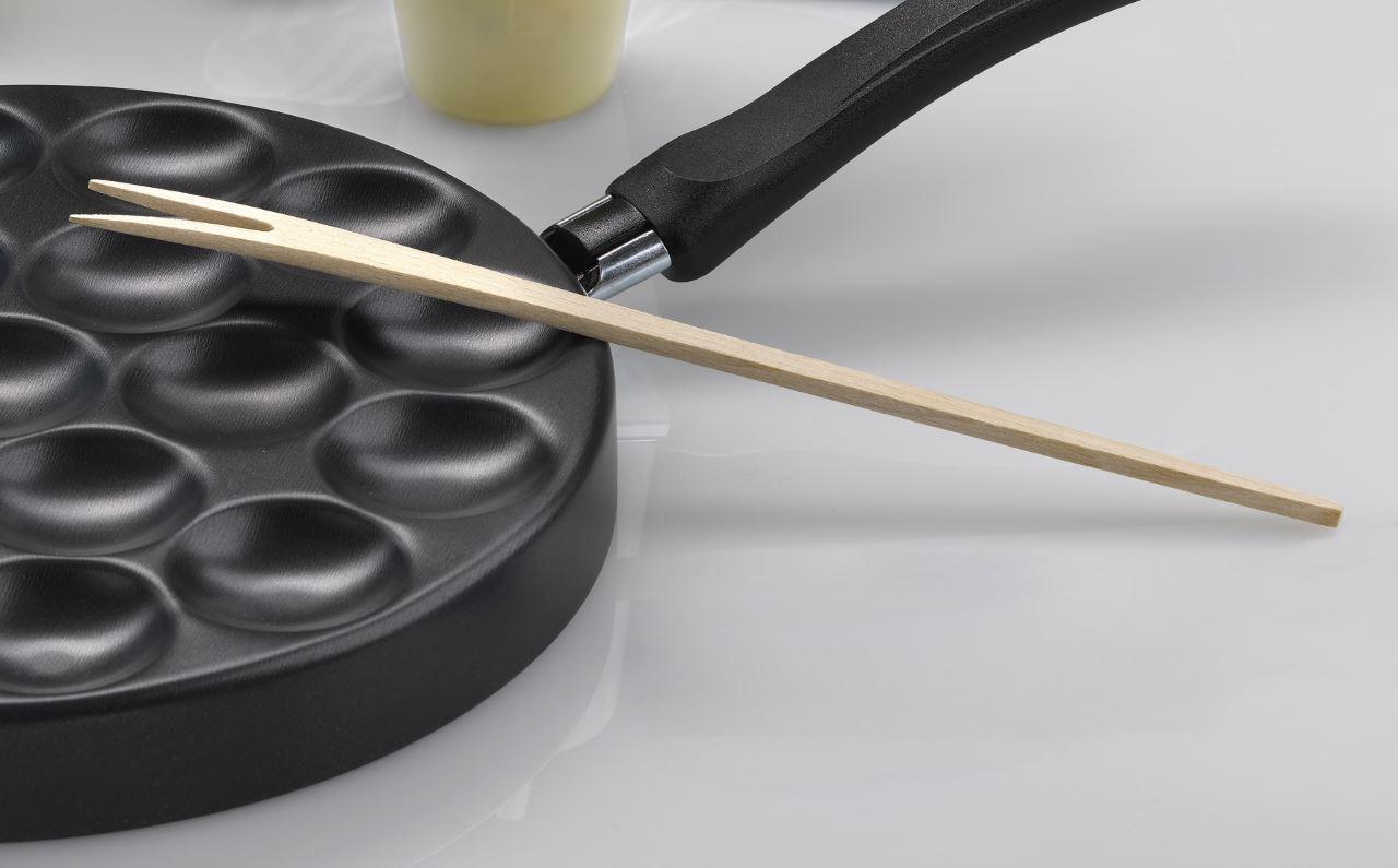 Die Holzgabel ist ideal zum Wenden von Poffertjes und anderen Teiggerichten in beschichteten Pfannen und Backformen.