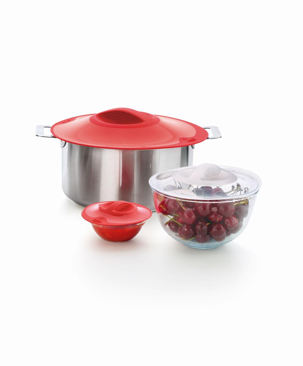 Durch das Aufsetzen auf Teller und Schüsseln wird bei runden Gefäßen aus Glas, Porzellan, Edelstahl, ... ein luftdichter Verschluss erzeugt. Speisen behalten so eine lang anhaltende appetitliche Frische.