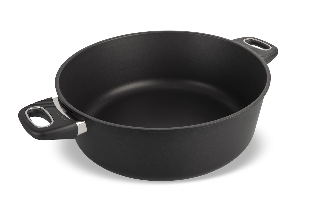 Besonders einfach in der Handhabung sind Antihaft beschichtete Bratentöpfe wie z. B. Gastrolux. Durch die Beschichtung wird das Anbrennen verhindert und die Reinigung erleichtert. Wenn der Bratentopf aus Aluguss ist, wird die Wärme wie bei Gusseisen von allen Seiten in den Topf weiter geleitet.