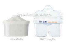 Während die Brita Maxtra Wasserfilter Kartuschen aus einem Stück besteht, ist der BWT Longlife Wasserfilter eine Einheit aus 2 Wasserfiltern, die durch einen festen Rahmen mit einander verbunden sind.