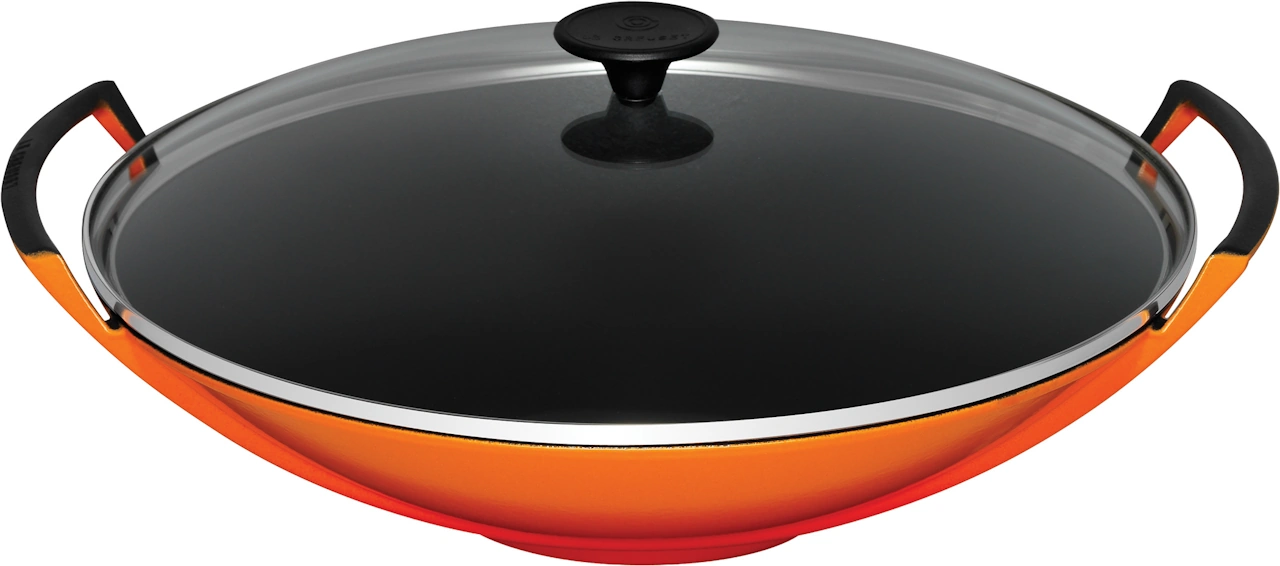 Gusseiserne Le Creuset und Skeppshult Wokpfannen haben eine flache Form, die den asiatischen Woks nachempfunden und damit ideal für gesundes Braten und Garen ist. Durch die geringe Steigung des Randes können die verschiedenen Wärmebereiche der Wokpfannen ideal genutzt werden, um nach dem kurzen, scharfen Anbraten die Zutaten weiter zu garen oder warm zu halten, während bereits die nächsten gegart werden. Alle Zutaten werden so gleichzeitig fertig und erhalten den perfekten Geschmack.