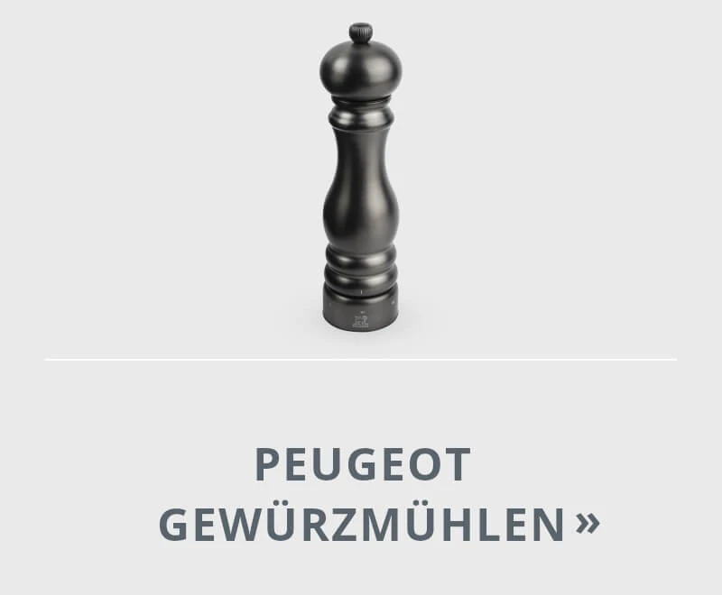 Neben den klassischen Salz- und Pfeffermühlen bietet Peugeot weitere Gewürzmühlen an, die für leckere Rezepte benötigt werden. Neben Muskat und Chili sind das Zimt, Feuchtsalz und Langpfeffer. Als Spezialist für Mühlen stellt Peugeot auch Leinsamenmühlen und natürlich weiterhin hochwertige Kaffeemühlen her.