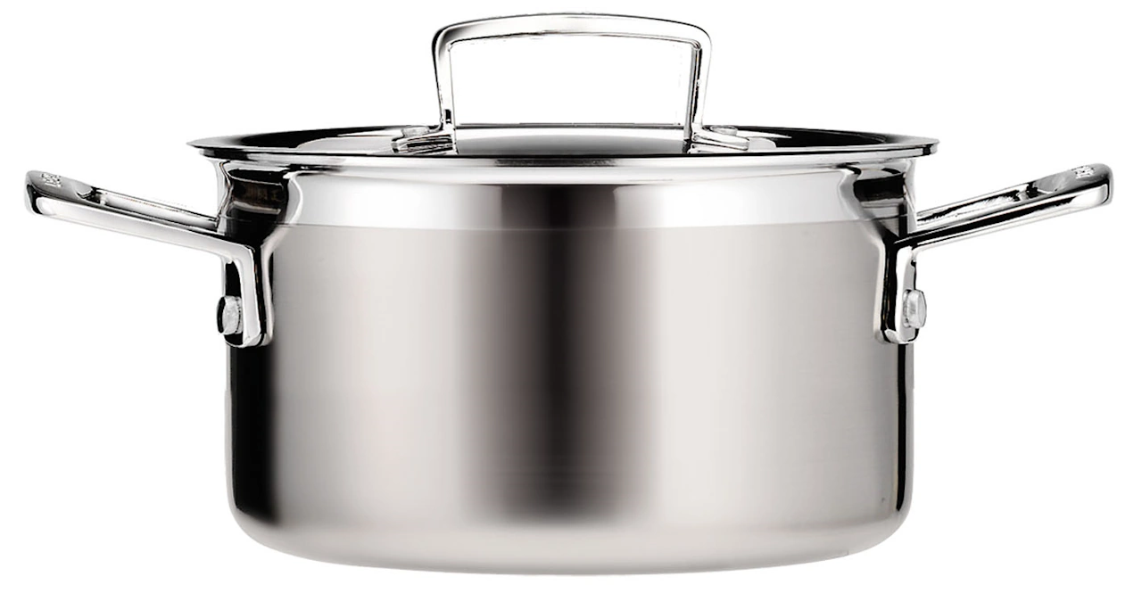 Die 3-Schicht Kochtöpfe von Le Creuset leiten Wärme durch einen Aluminiumkern vom Boden wie auch von den Wänden gleichmäßig in den Topf. Durch die 3 Schichten aus hochwertigem 18/10 Edelstahl, Aluminium und magnetischem 18/0 Edelstahl werden sehr gute Eigenschaften in Bezug auf Wärmeleitung, einfacher Reinigung und lebensmittelechter Oberfläche erzielt. Die Le Creuset 3-Ply Töpfe gehören daher zu den besten Edelstahl Kochtöpfen.