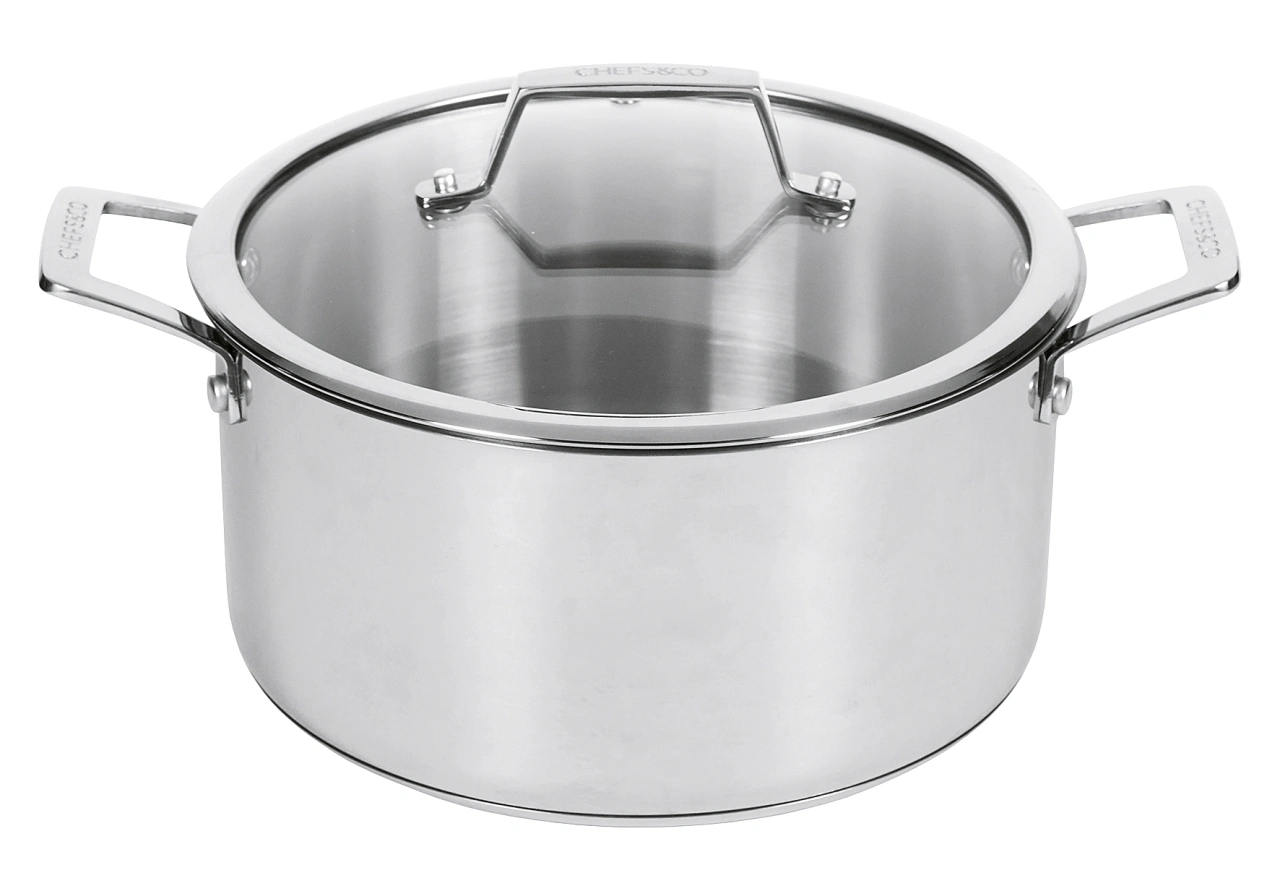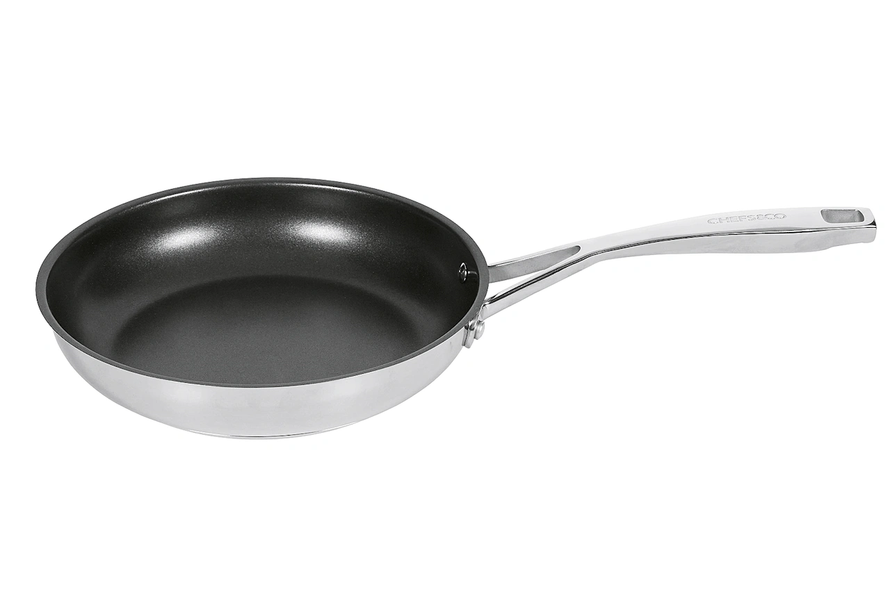 Die Pfanne besteht aus einem Pfannenkörper aus Aluguss mit einer hochwertigen, 3-lagigen Antihaft Beschichtung. Diese reduziert den Fettverbrauch und verhindert das Anhaften des Bratguts. Auch lässt sich die Pfanne leicht per Hand oder im Geschirrspüler reinigen. Das Aluguss speichert die Wärme gut und hilft so beim Energiesparen. Die Pfanne von Chefs & Co. kann auf allen gängigen Herden inklusive Induktion verwendet werden. Weiterhin ist sie bis 240 °C backofengeeignet. Der ergonomische, angenietete Griff besteht aus Edelstahl und verfügt über eine Aufhängeöse.