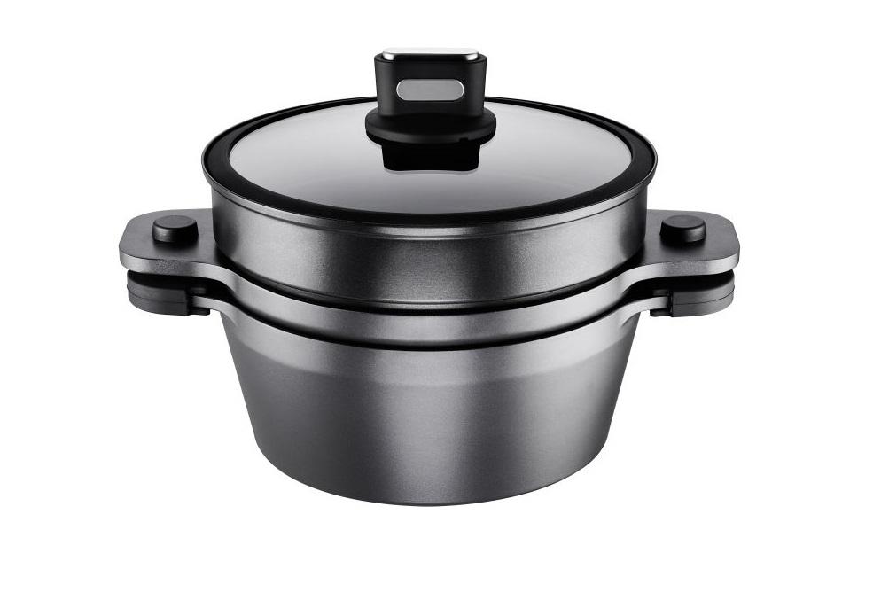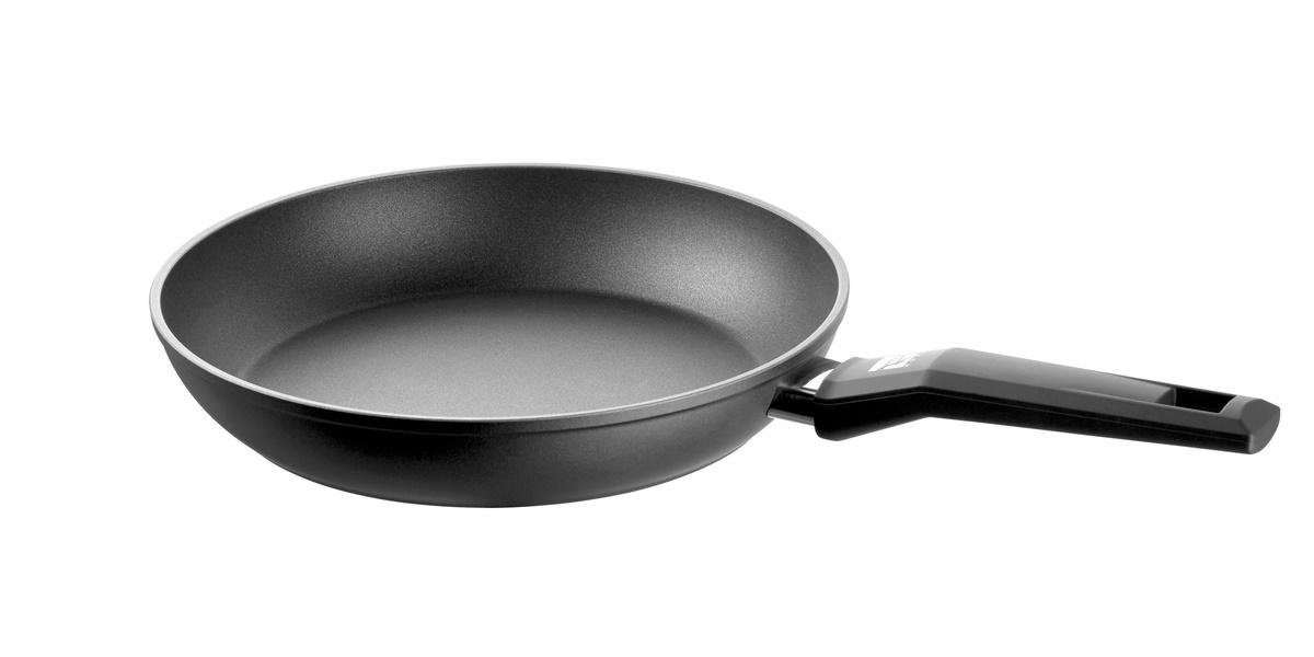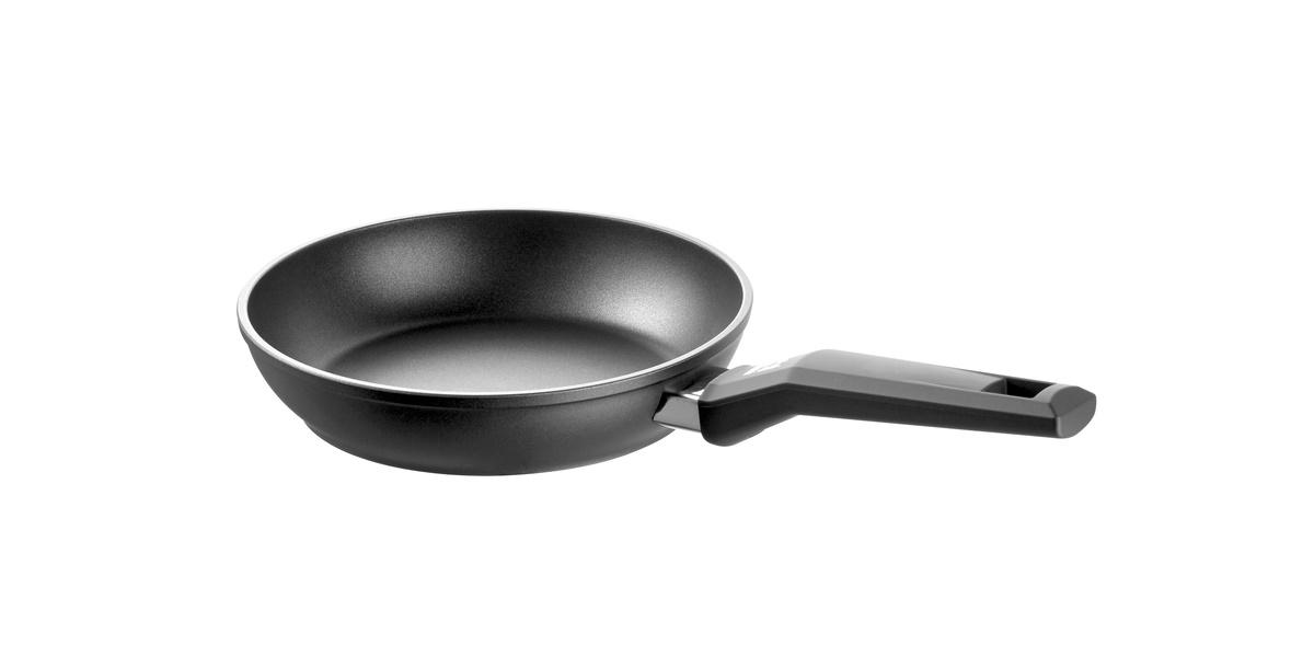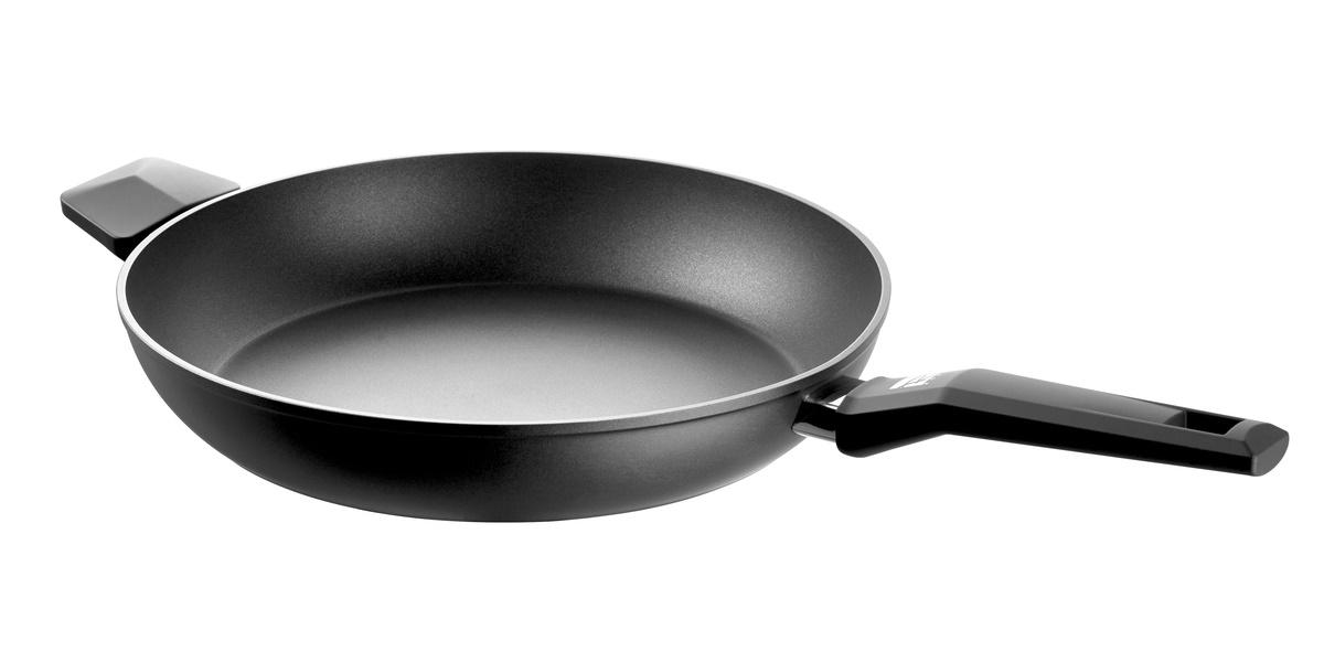 Flache Pfanne beschichtet aus Aluguss zum unkomplizierten Braten.