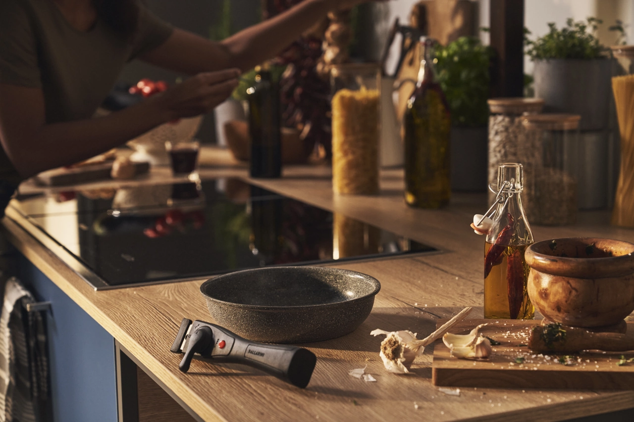 Ballarini Keramik Pfanne mit abnehmbarem Griff zum fettarmen Braten ohne Anhaften.