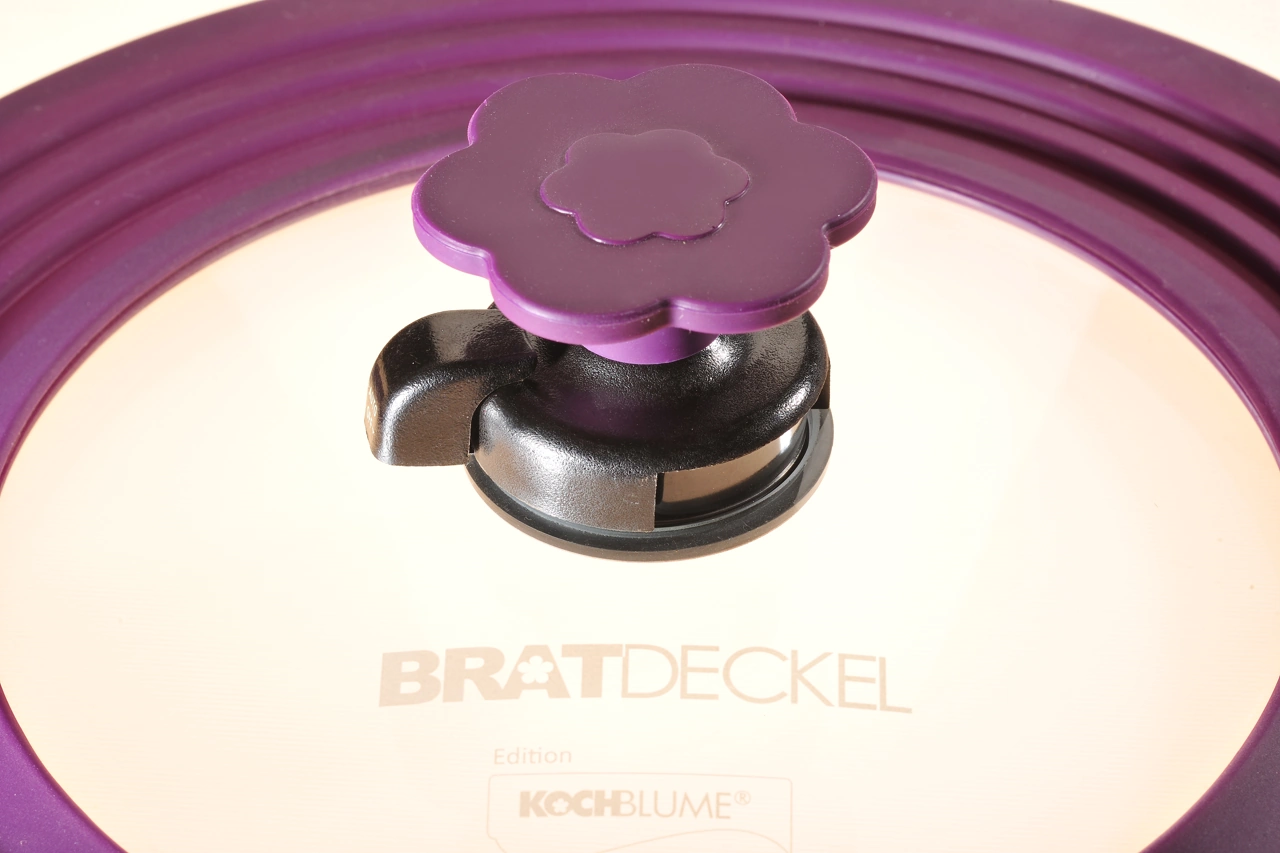 Der Squality Bratdeckel hat einen Durchmesser von 28 cm. Beim Braten in der Pfanne stellen Sie das Automatikventil auf "Auto", den Rest regelt der Deckel alleine. Als Topfdeckel eingesetzt, stellen Sie das Ventil auf "Off". Da der Glasdeckel mit Silikonrand hitzebständig bis 180 °C ist, kann er auch im Backofen genutzt werden. Außerdem ist der Deckel spülmaschinengeeignet.