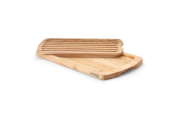 Continenta Brotschneidebrett aus Gummibaum Holz mit herausnehmbarem Rost.