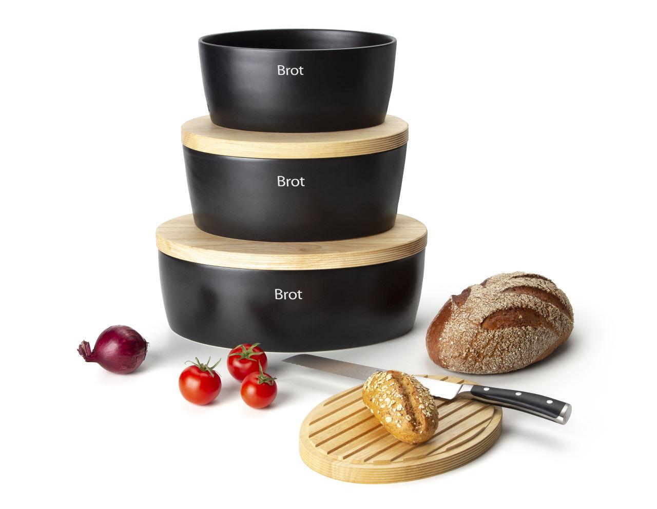 Praktischer und zugleich hübscher Keramik Brottopf mit Holzdeckel jetzt auch in schwarz.