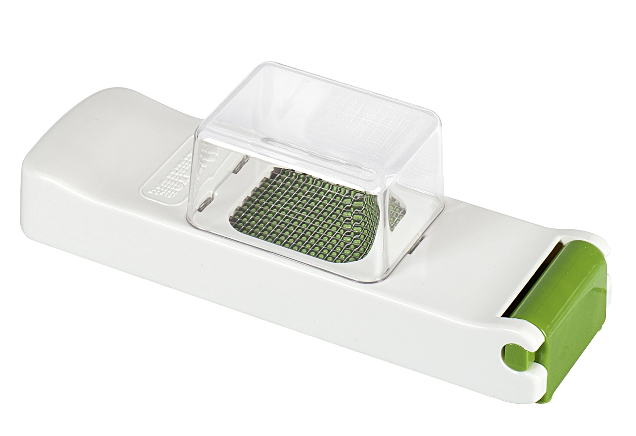Der Edelstahl Knoblauchschneider "G 7" von Genius schneidet geschälten Knoblauch in feine, gleichmäßige Würfel. Er ist damit optimal für alle, die die gesunde Wirkung des Knoblauchs voll ausnutzen möchten. Während Sie mit einer Knoblauchpresse wertvolle Inhaltsstoffe zerstören, bleiben diese beim Schneiden erhalten.