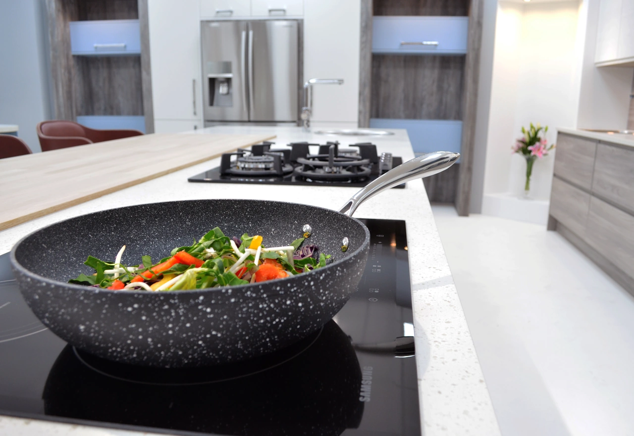 Große Wokpfanne aus Aluguss von Eaziglide mit besonders starker Antihaftbeschichtung.