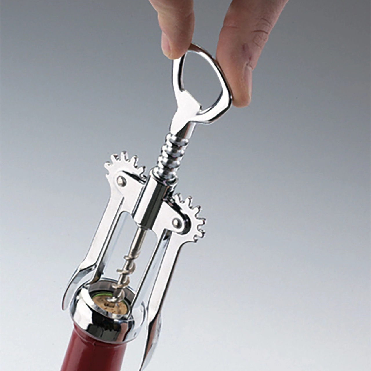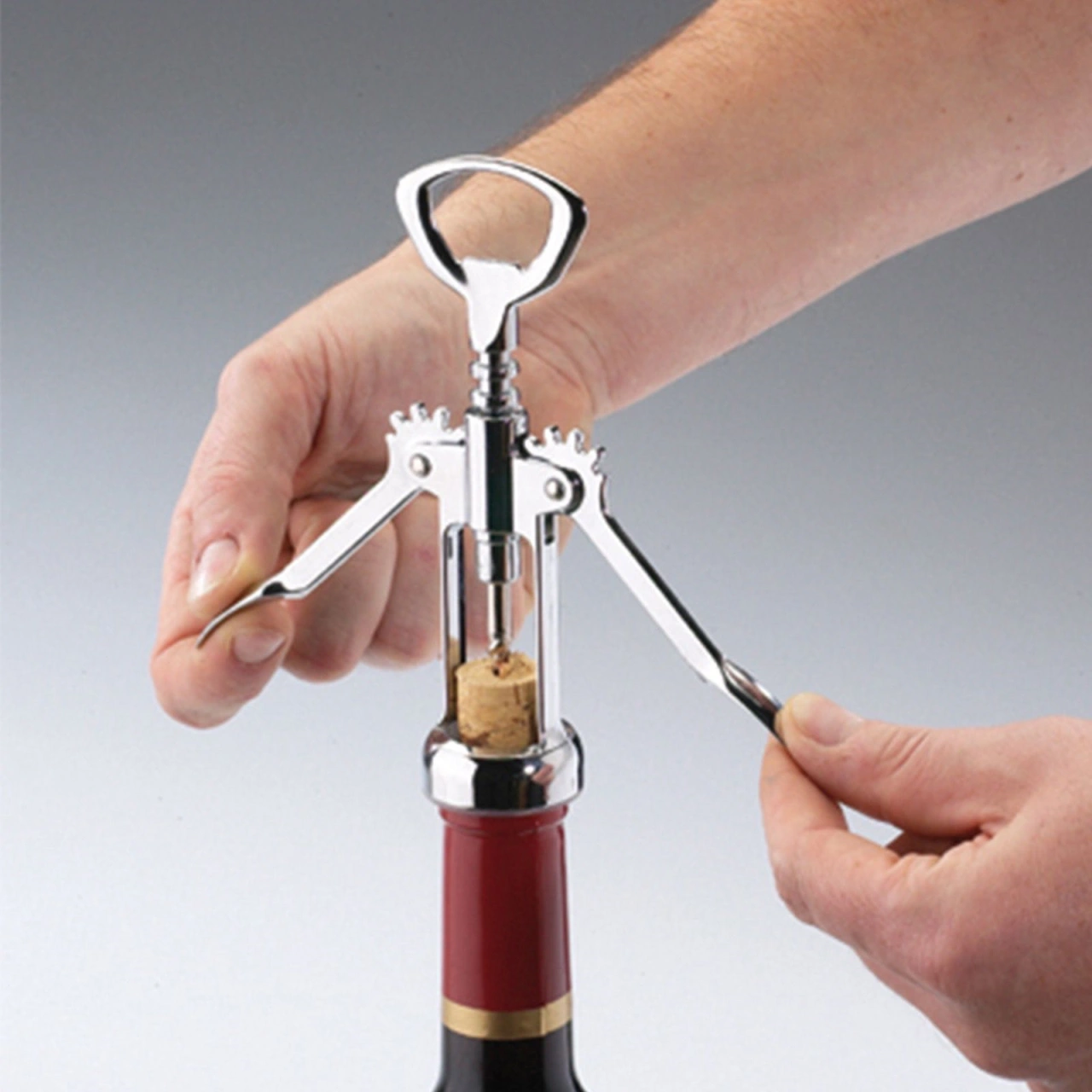 Der Korkenzieher wird über den Flaschenhals auf den Korken gesetzt. Die scharfe Spirale des Korkenziehers wird im Uhrzeigersinn in den Korken gedreht. Durch die Drehung wird der Korken sanft und schonend aus der Flasche gezogen - ohne Ziehen und ohne Kraftanstrengung. Durch die Form des Korkenziehers hat man die Flasche beim Entkorken fest im Griff.