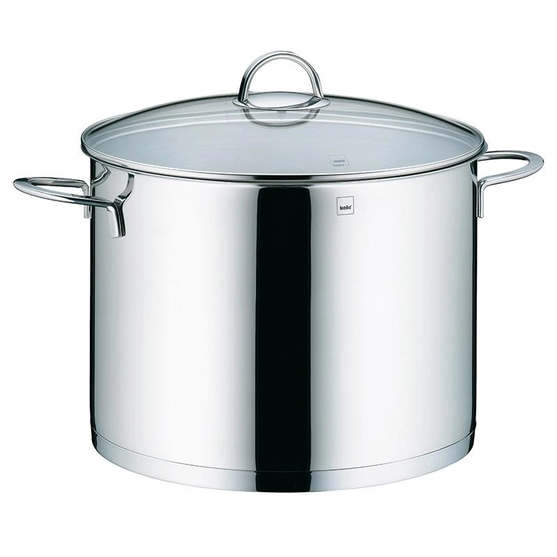 Der Kela Suppentopf besteht aus hochglanzpoliertem Edelstahl rostfrei 18/10 in einer hochwertig verarbeiteten Ausführung. Er ist mit zwei handlichen, wärmeisolierenden und backofenfesten Profilgriffen versehen. Der praktische Schüttrand erleichtert das Abgießen. Im Lieferumfang enthalten ist ein Glasdeckel aus Sicherheitsglas, der mit einem Edelstahlring eingefasst ist und das Sichtkochen ermöglicht.
