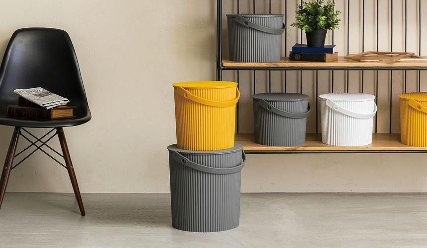 Ein Eimer für alle Fälle! Die Hachiman Eimer bieten eine hübsche und trotzdem griffbereite Aufbewahrungsmöglichkeit für Gegenstände des täglichen Lebens wie z. B. Kinderspielzeug, Lebensmittel wie Obst und Gemüse oder Wolldecken. Oder Sie verwenden die Eimer zur Mülltrennung. als Sitzmöbel oder als Beistelltisch mit Aufbewahrung. Die Hachiman Omnioutil Eimer bieten unendlich viele Gebrauchsmöglichkeiten für den Wohnbereich und den Garten.