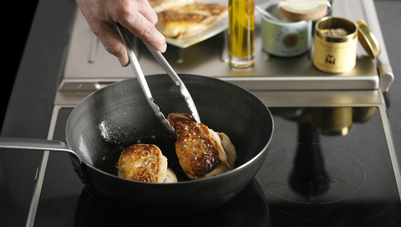 Pfannen aus Eisen eignen sich ideal zum kurzen und kräftigen Anbraten. Die Pfannen reagieren sehr schnell auf Temperaturveränderungen und eignen sich damit auch für komplizierte Rezepte. Beim richtigen Braten in Eisenpfannen werden die Zutaten außen kross gebräunt und bleiben innen saftig.
