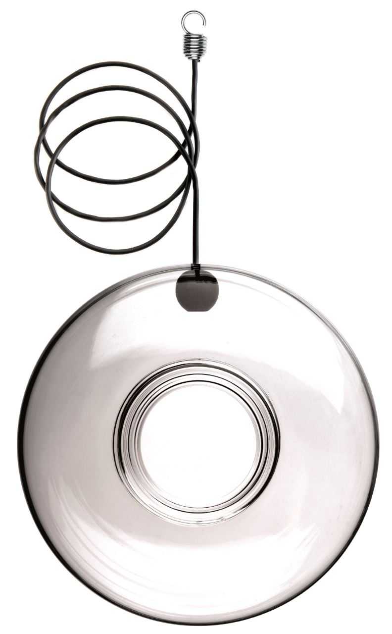 Der Futterring ist aus mundgeblasenem und frostsicherem Glas gefertigt. Die flexible Silikon-Aufhängung ermöglicht das Anbringen der Futterstelle an Ästen, Dachvorständen und Ähnlichem. Durch eine genügend große Öffnung lässt sich das Vogelfutter leicht einfüllen und auch kleinere Vogelarten gelangen bequem an ihre Körner.