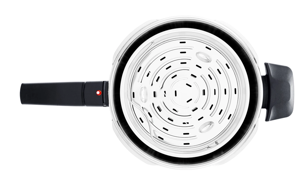 Die perfektionierte Sicherheitstechnik und eine kinderleichte Handhabung machen das Garen mit ihm besonders angenehm. Es gibt 4 einstellbare Garstufen von Schongaren über Schnellgaren bis zu drucklosem Garen. Letzteres ersetzt in Kombination mit dem mitgelieferten Dämpfeinsatz sogar den Dampfgarer. Im Schnellkochtopf behalten Lebensmittel zudem ihre wichtigen Vitamine, Mineralstoffe und ihren natürlichen Eigengeschmack.