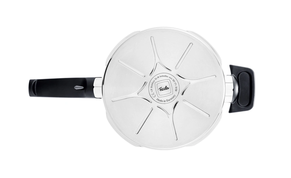 Weitere nützliche Details des Fissler Schnellkochtopfes sind der abnehmbare Griff sowie die Füllstandsanzeige zum Dosieren von Flüssigkeiten im Inneren des Topfes. Hier befindet sich auch eine Angabe der einzuhaltenden Mindest- und der Maximalfüllmenge. Durch die konische Form sind die Fissler Schnellkochtöpfe platzsparend stapelbar. Das Material Edelstahl macht sie hygienisch und pflegeleicht. Der demontierte Deckel und das Topfunterteil eignen sich zur Reinigung im Geschirrspüler.
