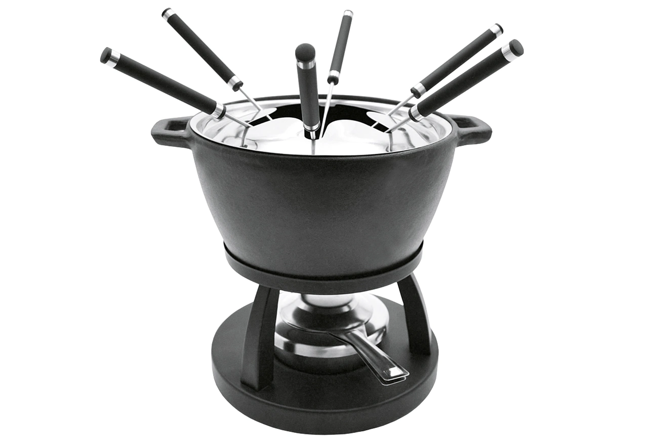 - Gusseisen Fonduetopf mit Edelstahl-Spitzschutz