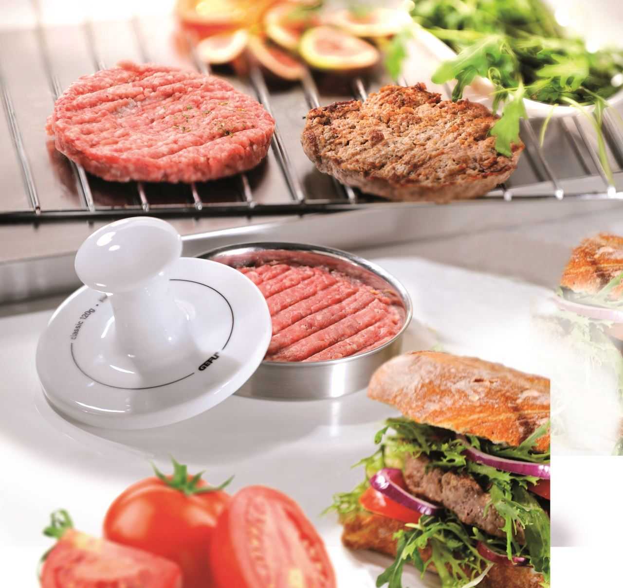 Mit der Gefu Hamburgerpresse Spark lassen sich schnell und leicht Burger Patties aus Fleisch, Fisch oder auch vegetarisch für leckere, hausgemachte Burger herstellen.