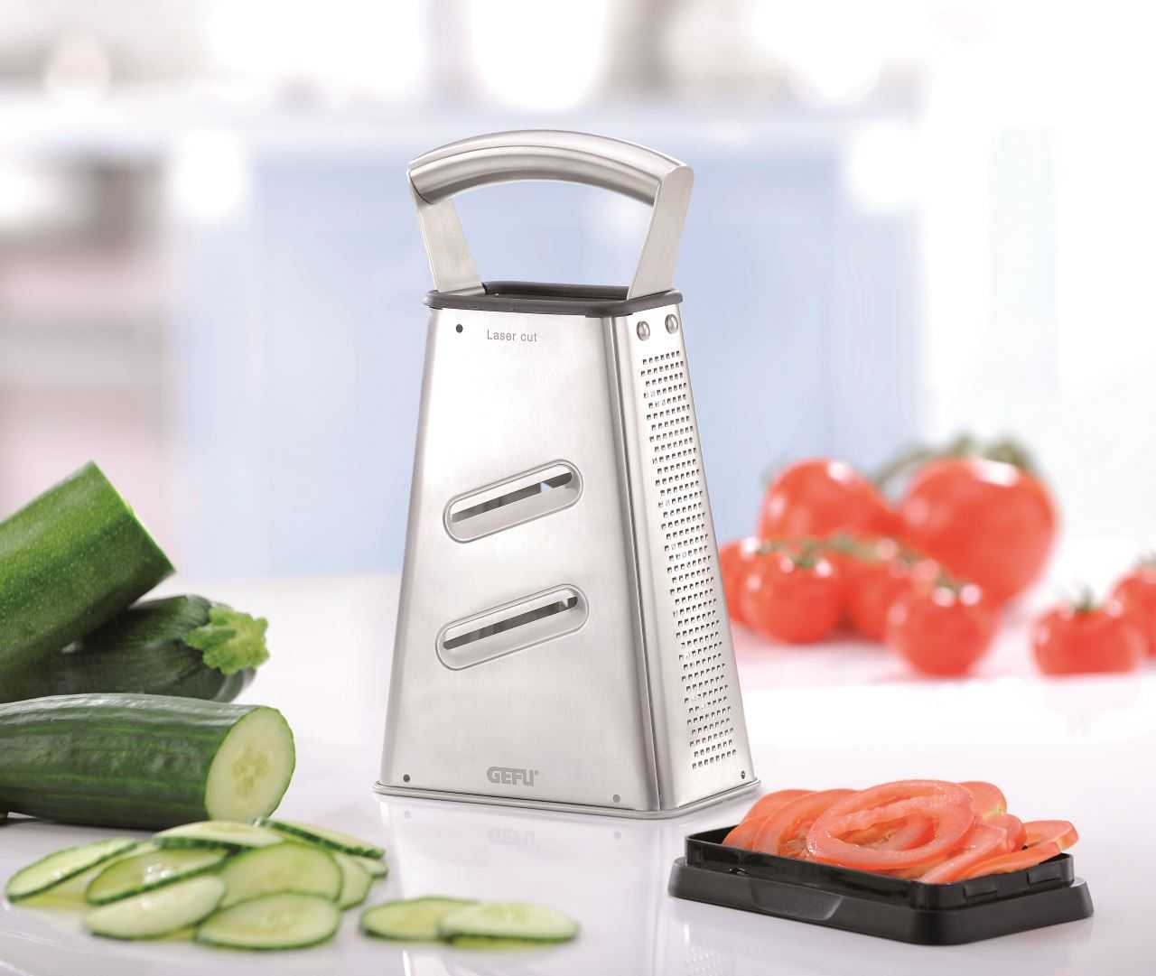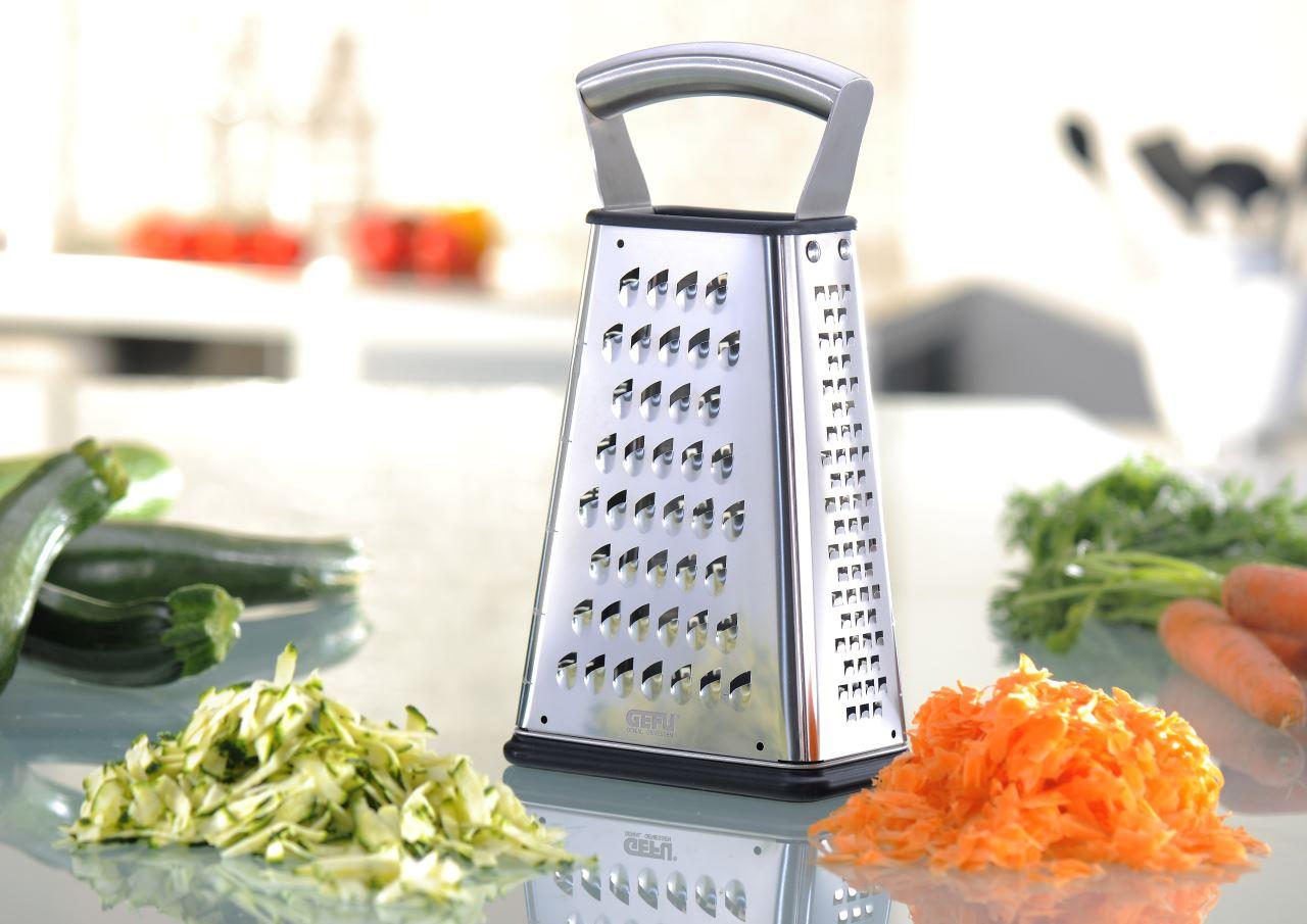 Vierkantreibe von Gefu zum Raspeln und Scheiben Schneiden von Gemüse, Obst, Käse, Schokolade uvm.