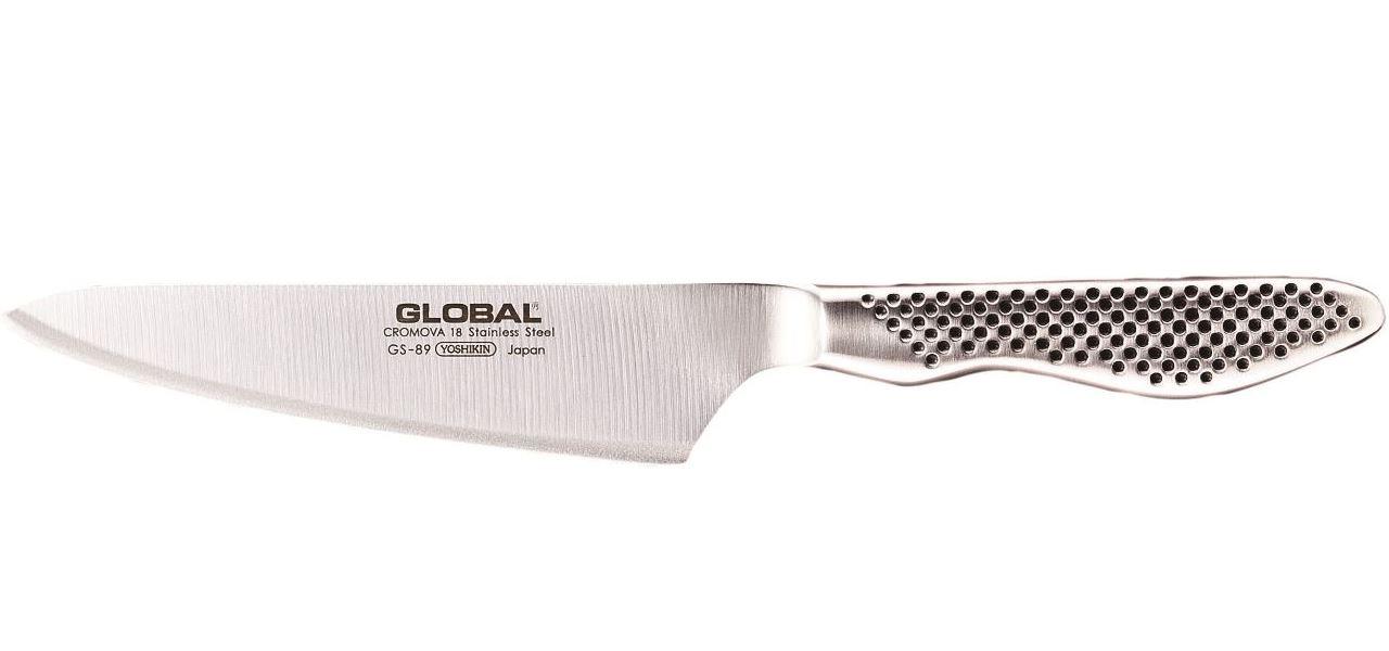 Das kleine Universalmesser GS-89 von Global ist ein vielseitiges Küchenmesser. Rasiermesserscharf, sicher und hygienisch schneidet es Fleisch, Fisch, Obst oder Gemüse. Global Messer sind besonders leicht, liegen gut ausbalanciert in der Hand und zeichnen sich durch ihr edles Design aus. Jeder, der Wert auf gute Küchenutensilien legt, wird dieses Global Messer schätzen.