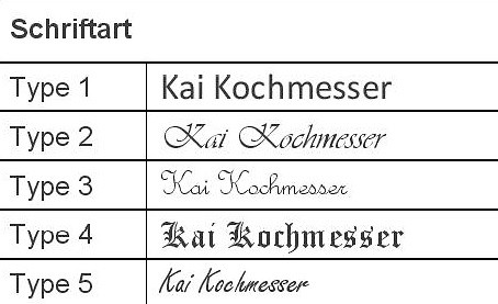 - Gravur von Texten in 5 verschiedenen Schriftarten