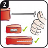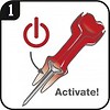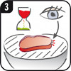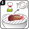 | Steak Champ mit dem Aktivator einschalten | Seitlich in das rohe Fleisch stecken | Fleisch wie gewohnt zubereiten | Bei beginnendem Doppelblitz-Signal das Steak von der Hitzequelle nehmen. | Steak Champ aus dem Fleisch entfernen |