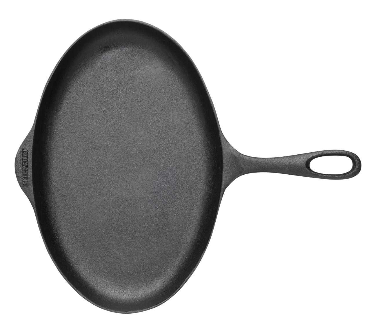 Ovale Fischpfanne und Filetpfanne aus Gusseisen sehr gut geeignet für große, längliche Fleischstücke und Fische.