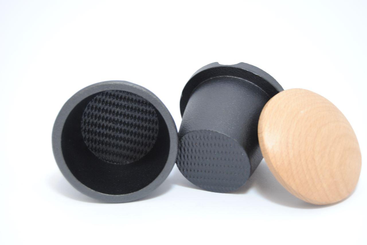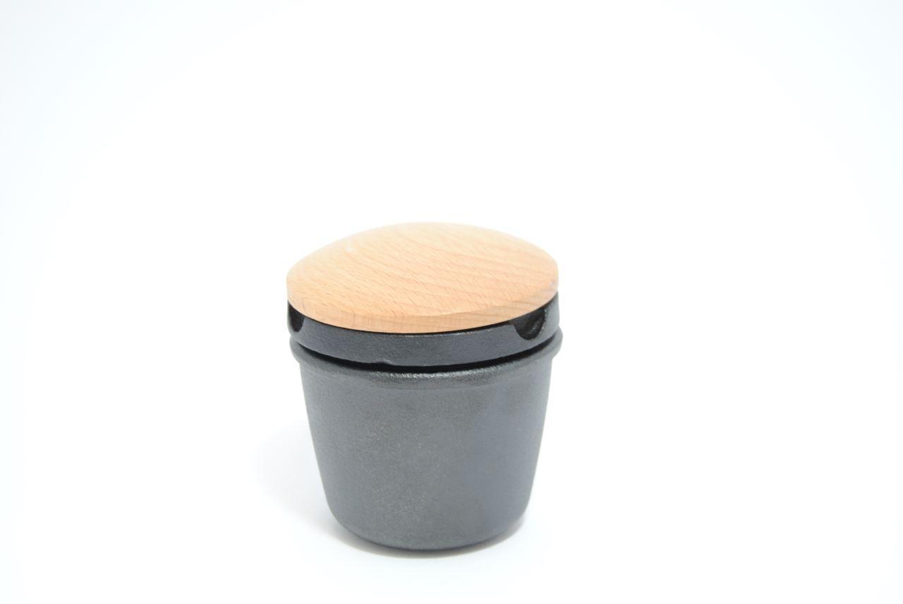 Die Gewürzreibe ist aus massivem Gusseisen mit einem dicht schließendem Buchenholzdeckel gefertigt. Der innere Boden der Schale sowie der Boden des passgenauen Mahlkonus sind jeweils geriffelt. Beim Drehen gegeneinander werden so Gewürze und Kräuter wie mit einem Mörser schonend zerrieben. Das relativ hohe Eigengewicht der Reibe unterstützt dies zusätzlich.