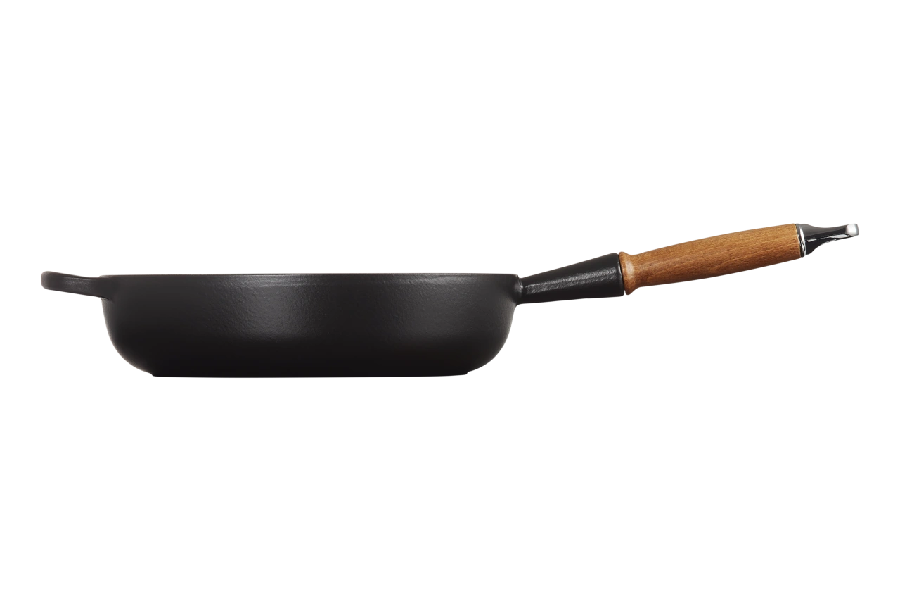Le Creuset Pfannen haben ein klassisches Design mit Holzgriff. Ein großer Gegengriff aus Gusseisen erleichtert das Tragen. Bitte beachten Sie, dass das Braten in einer Gusseisen Pfanne für viele Köche die Eigenschaften jeder anderen Pfanne übertrifft. Es erfordert aber eine besondere Geschicklichkeit und Übung.