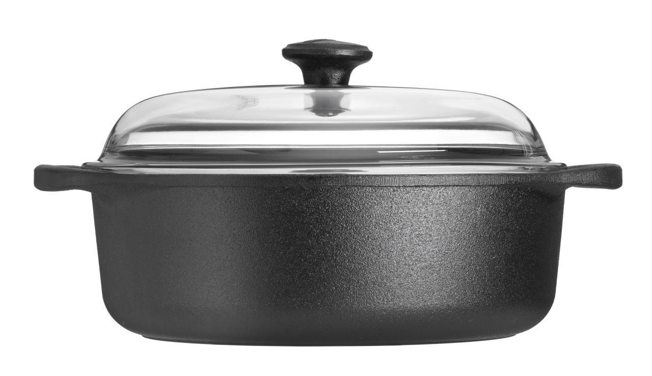 Gusseisen Kochtopf / Bräter mit Glasdeckel von Skeppshult aus Schweden - zum aromatischen Kochen.