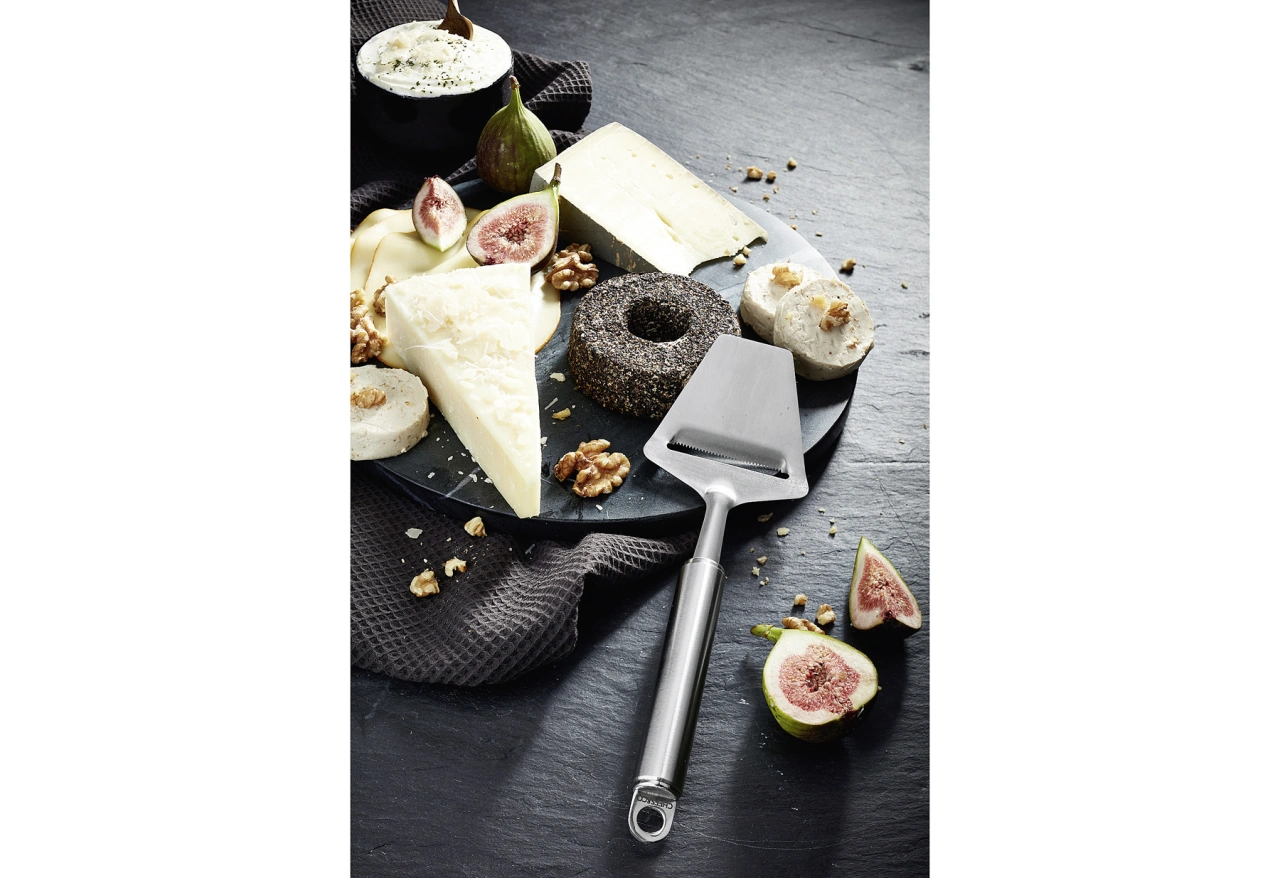 Mit dem hochwertigen Käsehobel von Chefs & Co. schneiden Sie einfach und sauber Scheiben von Hartkäse wie Emmentaler & Bergkäse oder von Schnittkäse wie Tilsiter, Gouda & Esrom. Schnell haben Sie so leckeren Käse als Brotbelag oder für die Käseplatte geschnitten. Denn frischer Käse vom Stück schmeckt einfach aromatischer!