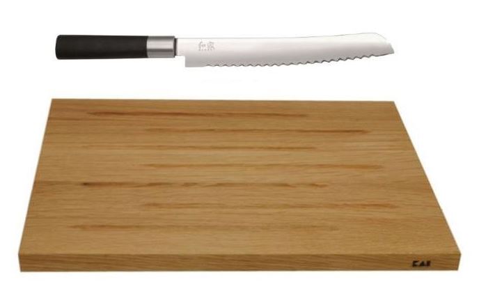 Kai Wasabi Brotset 2-teilig mit extra scharfem Japan-Brotmesser und Eiche Schneidebrett.