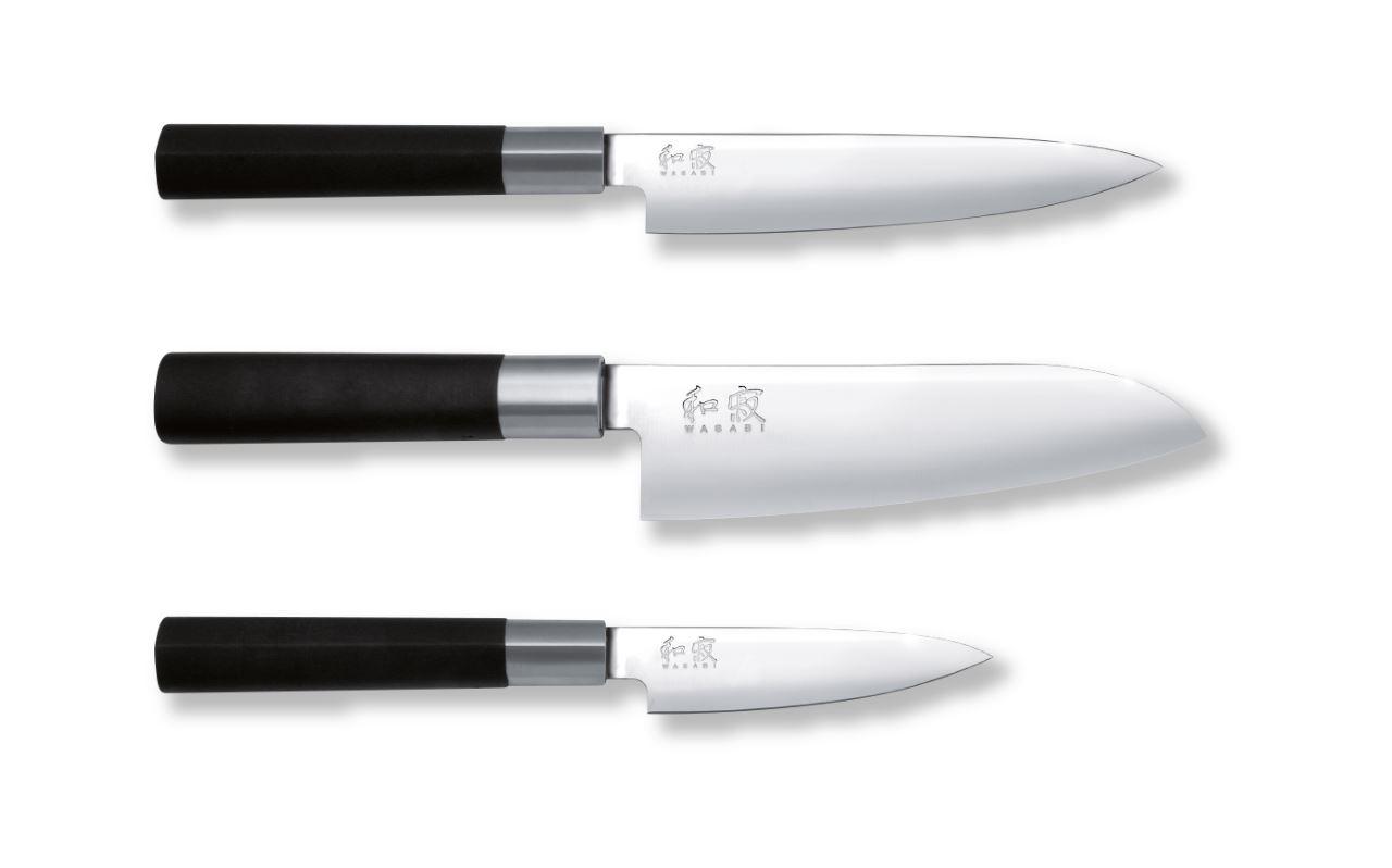 Kai Wasabi Messer sind extrem scharfe und günstige, hochwertige, japanische Küchenmesser für den täglichen Einsatz. Jedes Messer hat eine Härte zwischen 57 und 59 HRC, die jeweils auf den Einsatzzweck des Küchenmessers angepasst ist.