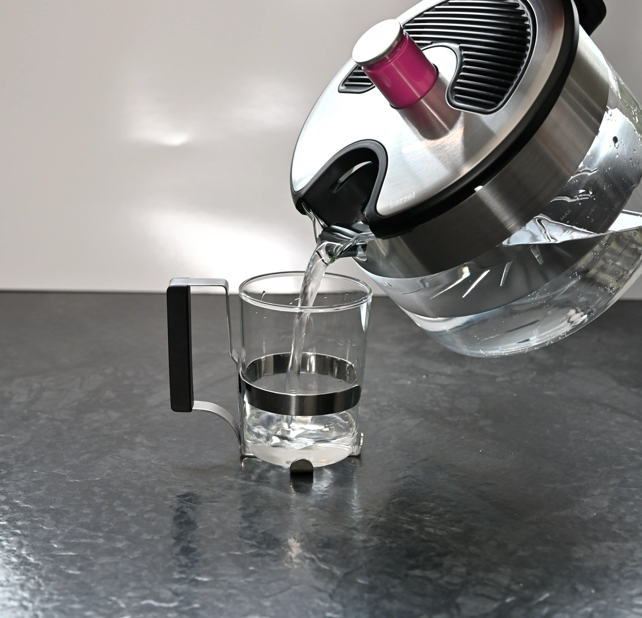 Befüllt wird der Kezzel Wasserkocher über die Einfüll- und Ausgußöffnung. Die maximale Füllmenge des Kessels beträgt 1,5 Liter. Betrieben werden kann der KEZZEL ab 125 Milliliter. Der Glasbehälter ist spülmaschinengeeignet und lässt sich leicht entkalken. Besonders effizient funktioniert der Wasserkessel auf Standard- und Flexinduktion. Bei Vario- oder Vollflächeninduktionsherden kann der Kochvorgang etwas länger dauern. Wird der Wasserkocher gerade nicht benötigt, kann der Griff zum Verstauen umgeklappt werden.