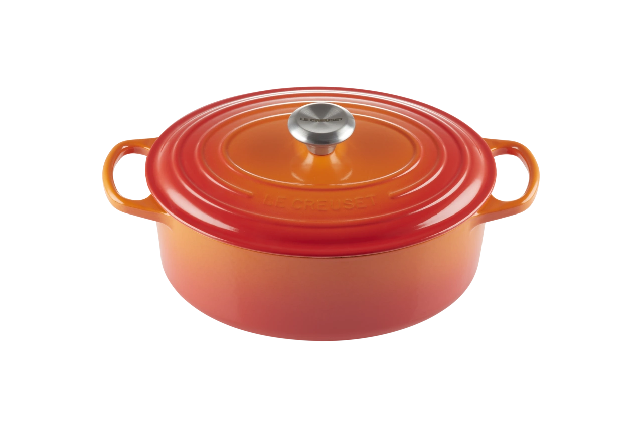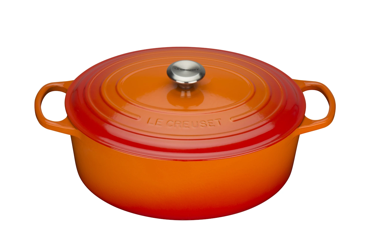 Großer ovaler Le Creuset Bräter aus Gusseisen für große Braten und Geflügel bis zu kleinen Gänsen.