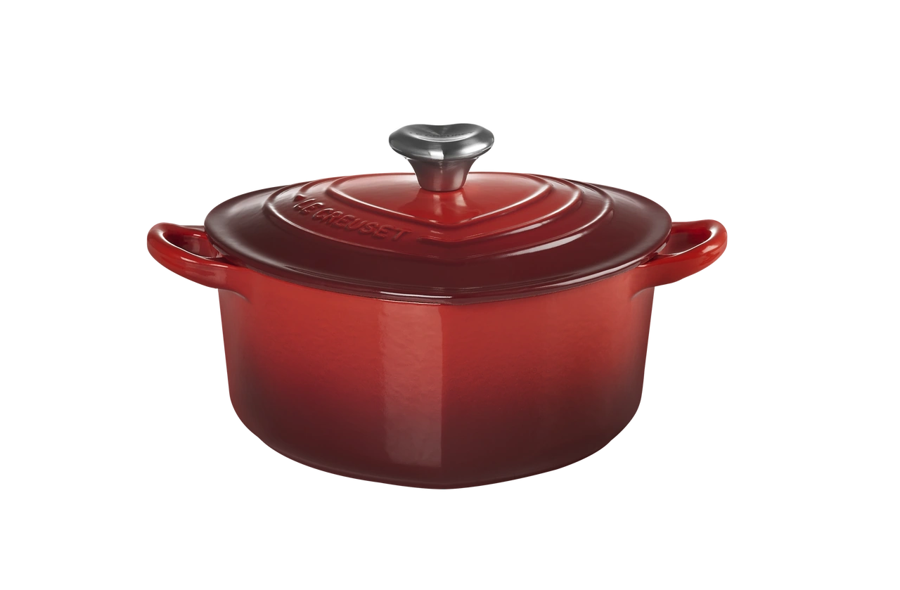 Liebe geht durch den Magen! Dieser Gusseisen Bräter und Topf in Herzform gehört zur Le Creuset Herz-Kollektion. Der Bräter kann, genau wie alle anderen Töpfe und Bräter von Le Creuset, zum Kochen, Braten, Schmoren und Backen verwendet werden. Beim Servieren auf dem Esstisch ist dieser Herzbräter ein ganz besonderer Hingucker. Erhältlich ist dieser hübsche Bräter in zwei verschiedenen Farben.