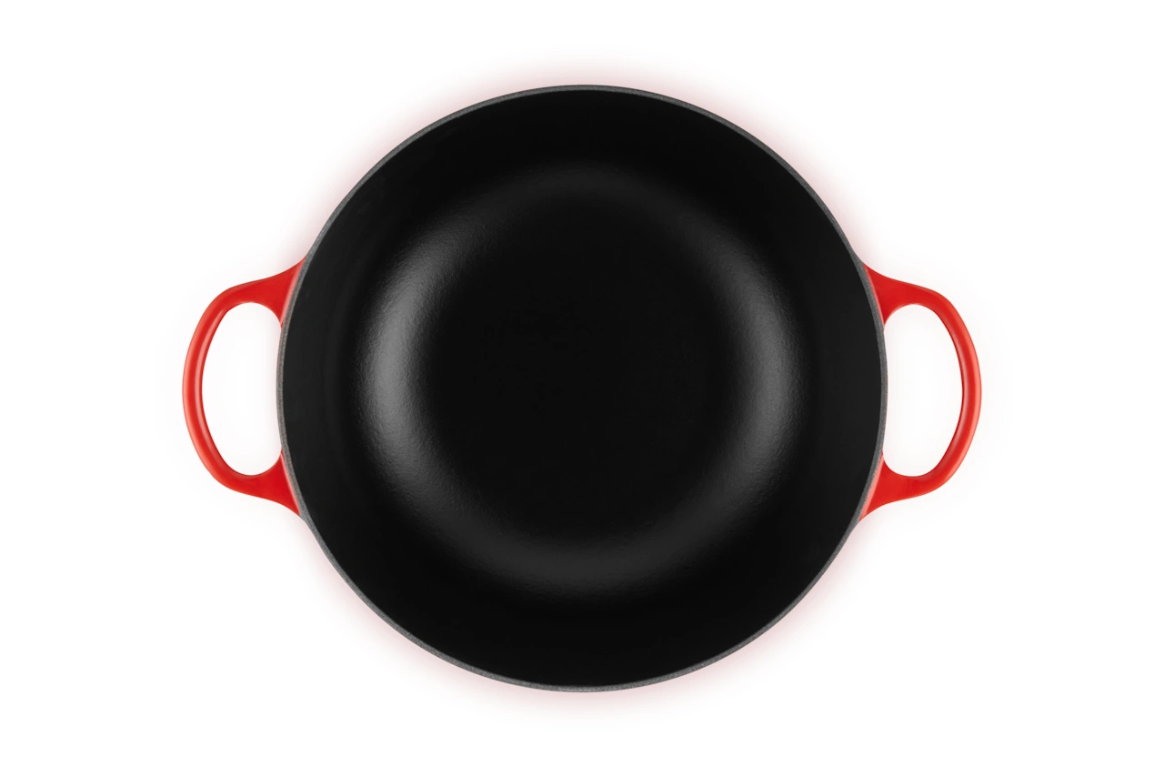 Die hochwertige Emaillierung der Le Creuset La Marmite Töpfe ist außen farbig oder schwarz. Die Innen-Emaillierung ist schwarz, was sich positiv auf den Anbrat-Effekt auswirkt. In der Klassifizierung von Le Creuset fällt der La Marmite Topf unter die Spezial Bräter.