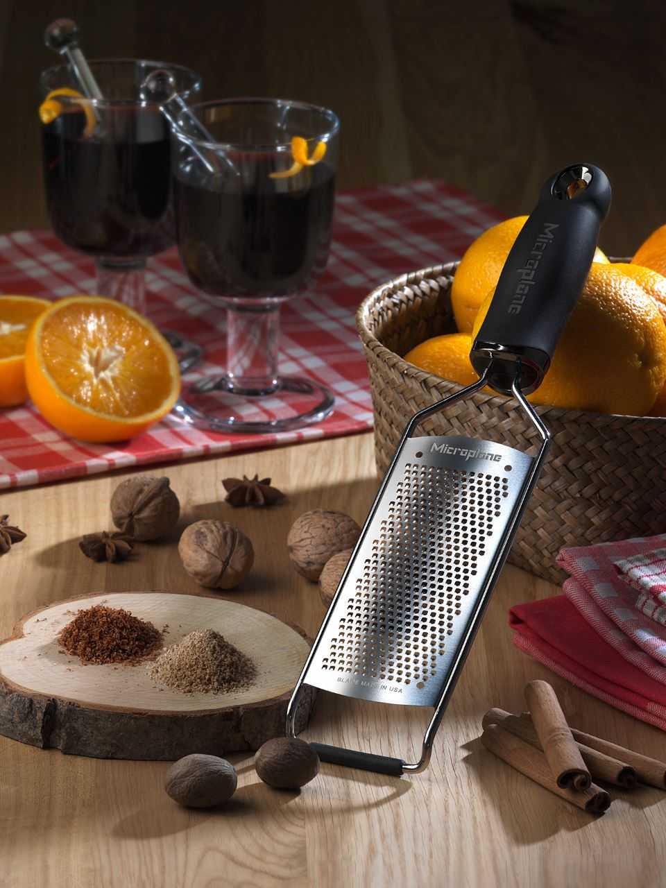Microplane feine Küchenreibe für Zitrusschalen (Zester), Zimt, Muskatnuss, Parmesan uvm.
