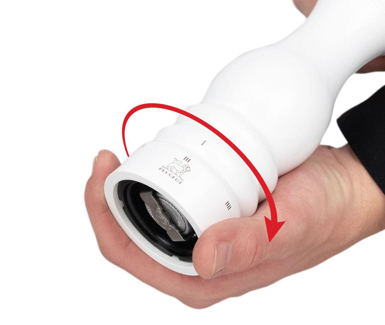 Die unterschiedlichen für Salz oder Pfeffer entwickelte Mahlwerke der Peugeot Gewürzmühlen ermöglichen, dass sich das Aroma des Gewürzes richtig entfalten kann. Peugeot Mahlwerke übertreffen an Schärfe und Haltbarkeit die meisten anderen Gewürz Mahlwerke. Das patentierte U-Select ermöglicht das stufenlose Einstellen des Mahlgrades durch Drehen des unteren Endes der Mühle. Außerdem gibt es 6 fest einstellbare Stufen.