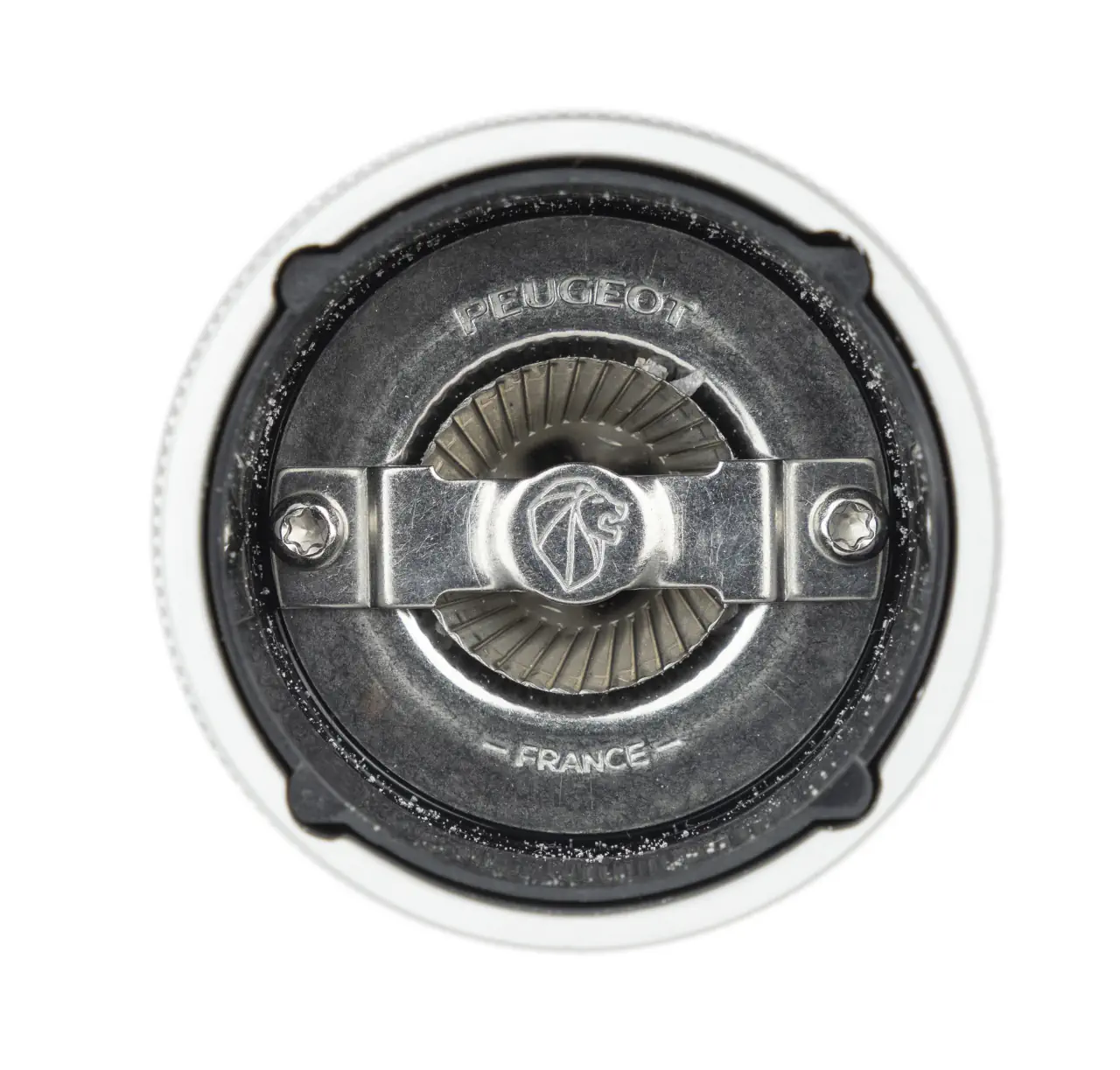 Der gewünschte Mahlgrad des Salzes wird bei der Peugeot Salzmühle aus der Line Kollektion per Kopfschraube stufenlos von ganz fein bis grob eingestellt. Das speziell für Salz optimierte Metall Mahlwerk der Peugeot Mühlen erreicht, dass sich Aromen optimal entfalten können. Durch die richtige Metalllegierung des Mahlwerkes, der verbesserten Salz Zuführung, einer zweireihigen Spezialverzahnung und scharfen Schneidmessern wird das Salz optimal gemahlen.