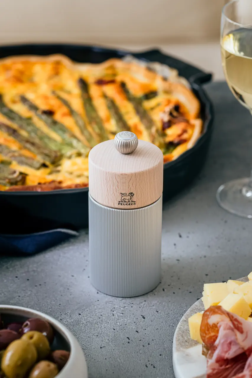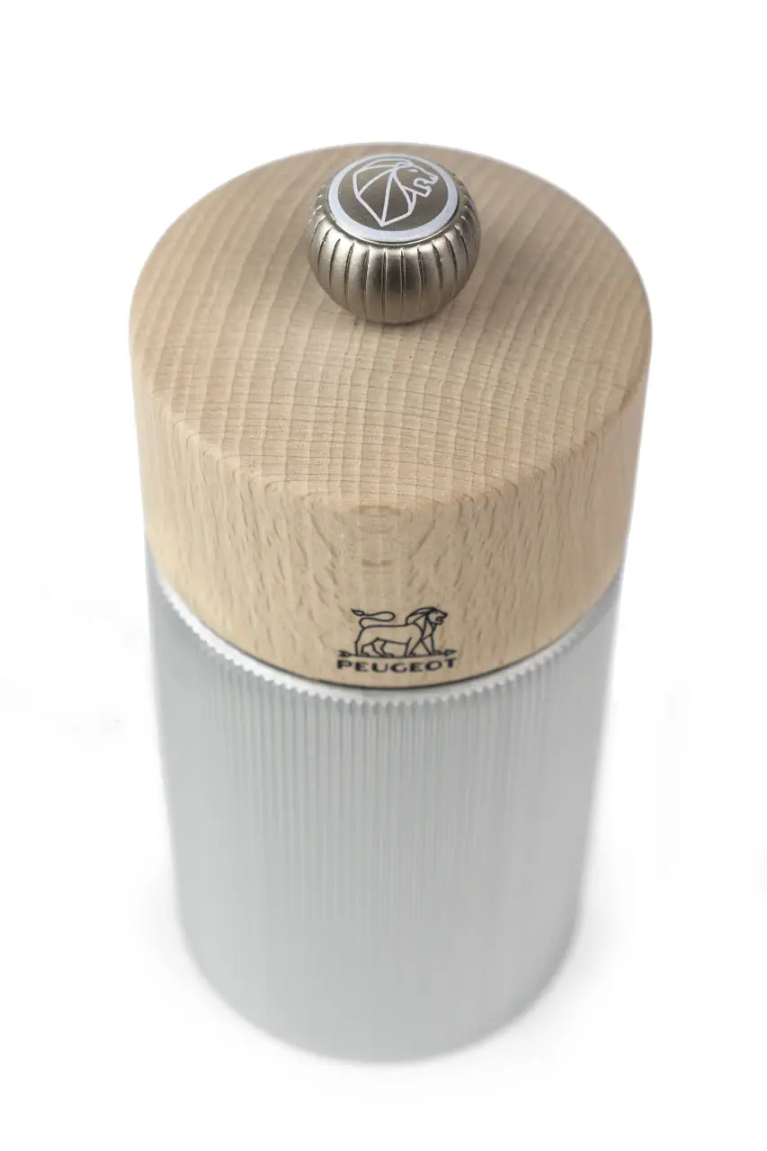 Die kleine Salzmühle Line von Peugeot bezaubert durch ihr elegantes, metallisches Aussehen. Die Kombination aus einem Alukörper mit Rillen und dem Kopf aus Holz macht diese Gewürzmühle zu einem Hingucker auf jedem Tisch. Diese hübsche Salzmühle gibt es in den Farben anthrazit und natur. Sie hat eine Höhe von 12 cm.