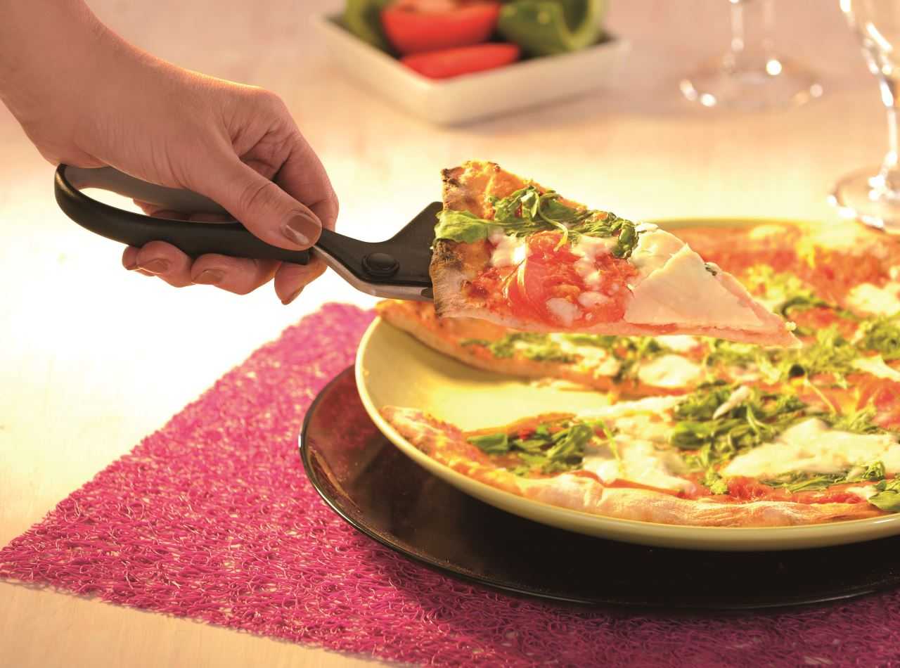 Pizzaliebhaber aufgepasst: Die Gefu Pizzaschere 2 in 1 ist der praktische Küchenhelfer in jedem Haushalt. Mit der Schere schneidet man die Pizza sauber in Stücke und hebt diese anschließend zum Essen auf den Teller oder auf die Hand. Die Gefu Pizzaschere eignet sich ebenfalls für Omelette, Frittata oder Quiche.