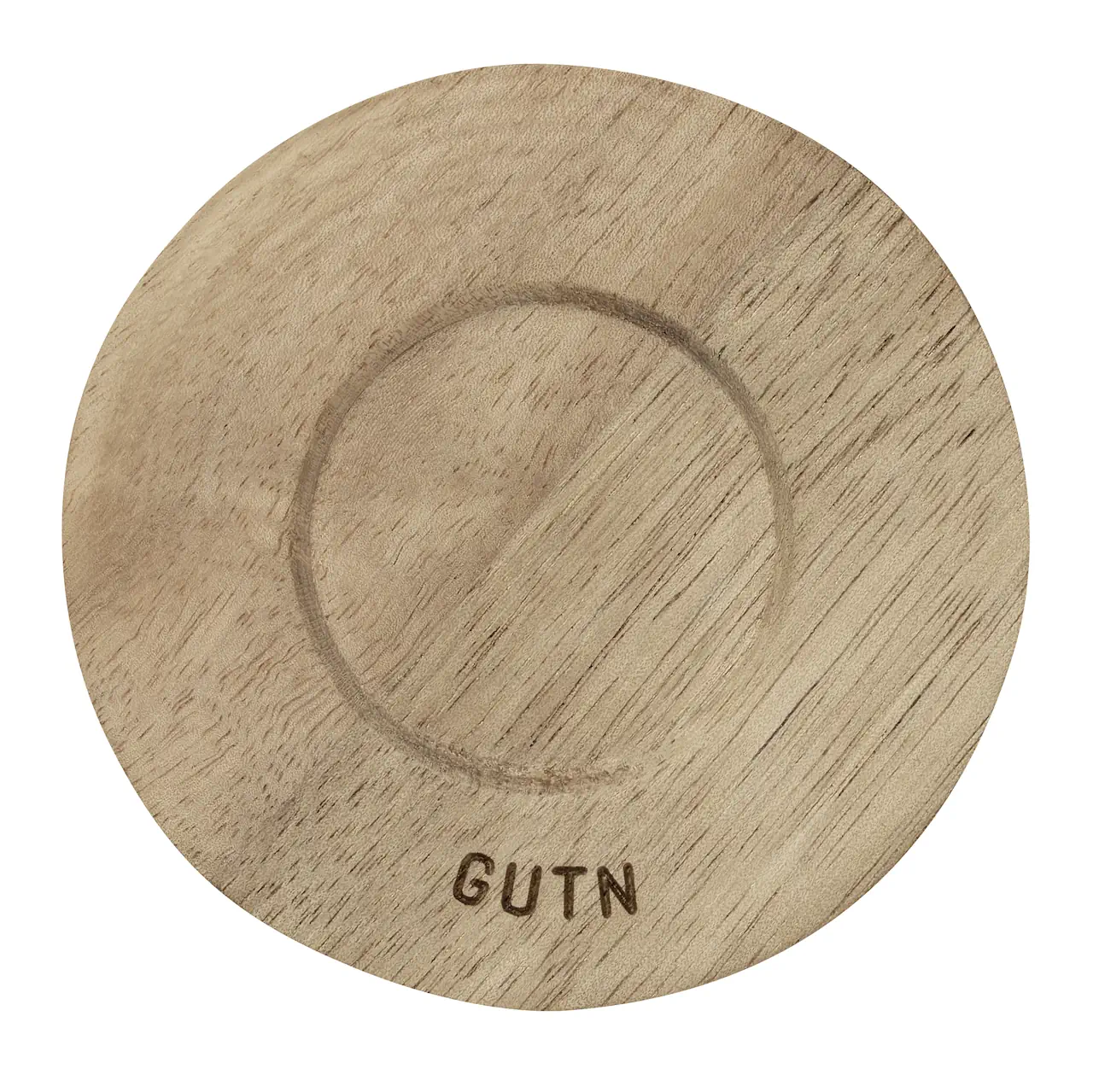 - handgefertigter Untersetzer aus Akazienholz mit gelasertem Schriftzug „GUTN“