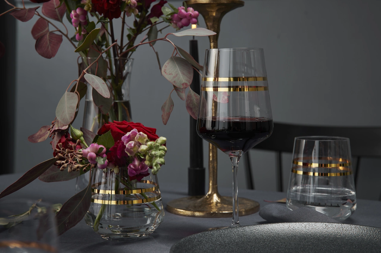 2er Set Rotwein-Gläser Celebration Deluxe von Ritzenhoff mit goldenen Streifen.