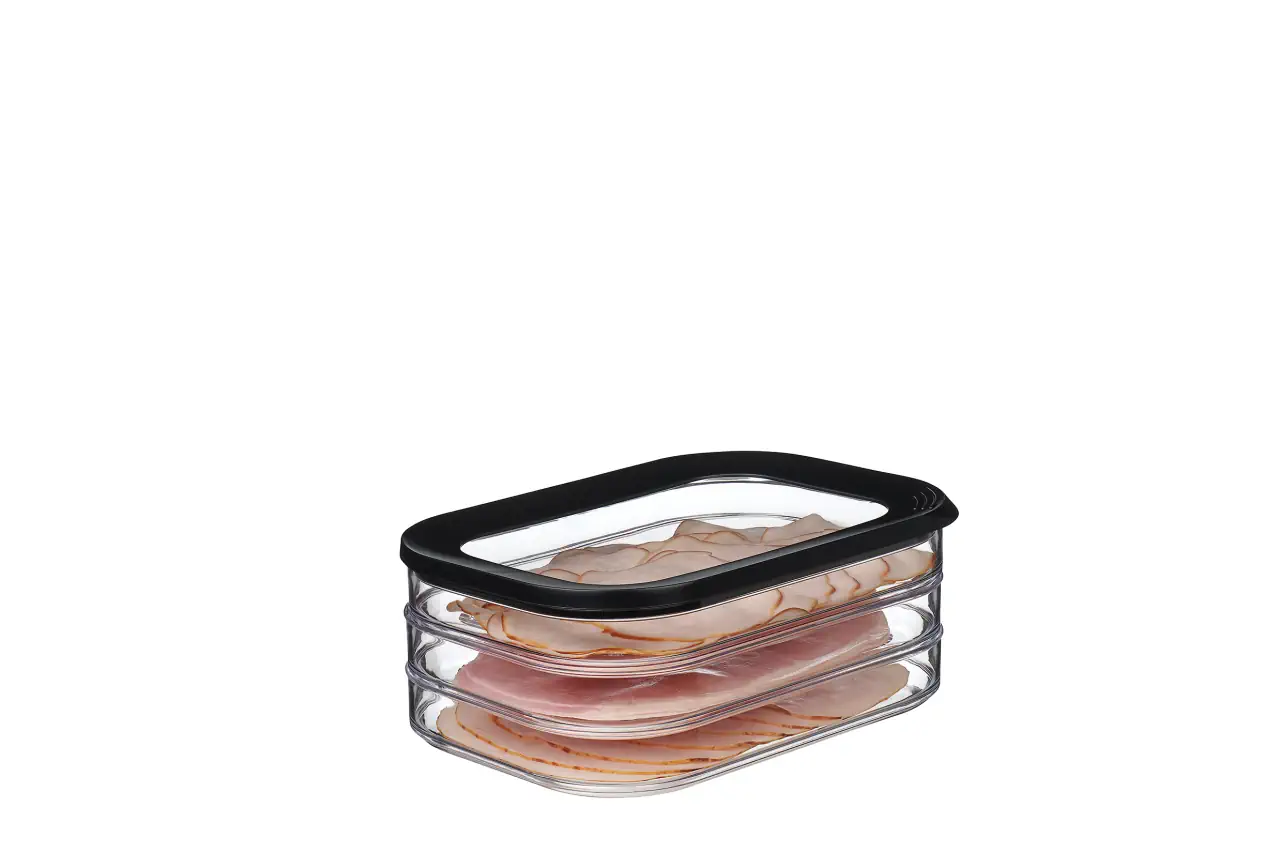 Das Vorratsdosen Set von Mepal besteht aus 3 übereinander stapelbaren Vorratsdosen aus transparentem Hart-Kunststoff. Die Vorratsdosen eignen sich optimal für Aufschnitt. Der Deckel hat ein großes Sichtfenster. So kann der Inhalt jede Etage des Vorratsdosen Sets leicht gesehen werden.