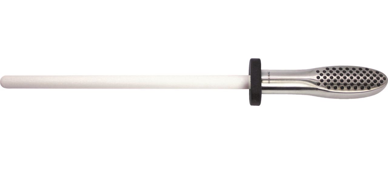 Die Messer von Global verfügen über eine langanhaltend scharfe Klinge aus speziellem Klingenstahl, dem Cromova 18 Edelstahl. Dieser wird auf 58 Rockwell eisgehärtet. Nach der Härtung wird die Messerklinge von japanischen Meistern per Hand mit dem besonders scharfen Schliff versehen. Nur durch den Handschliff ist die perfekte und langanhaltende Schärfe möglich. Der Global Klingenstahl Cromova 18 ist gleichzeitig hart, flexibel und widerstandsfähig. Die Klinge ist vor Rost geschützt und, anders als die meisten Messerklingen, unempfindlich gegen Säuren und Laugen. Sollte die Schärfe nach häufiger Benutzung dennoch nachlassen, können Sie das Messer mithilfe eines Keramik Nassschleifsteins leicht selbst schleifen.