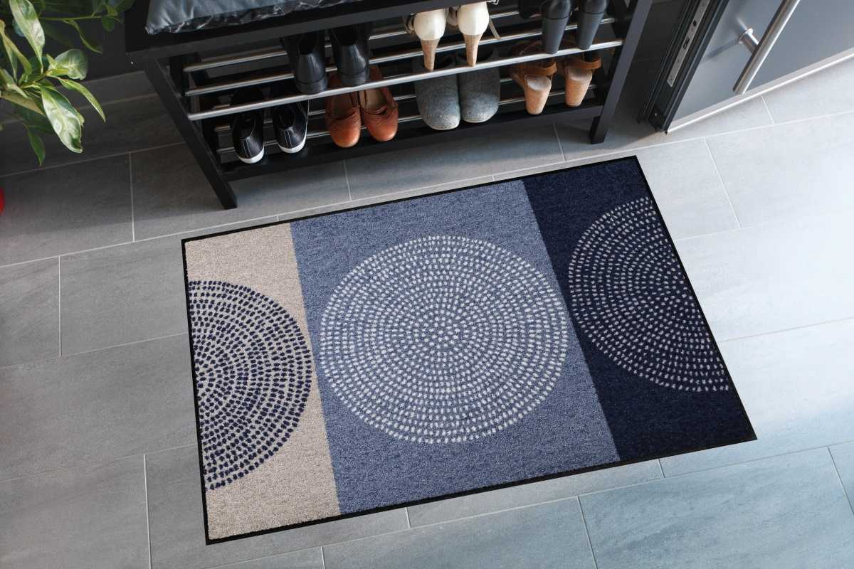 Salonlöwe Fußmatte "Nestor denim" blau mit Kreisen für Bad, Küche, Schlaf- und Wohnzimmer oder den Flur.