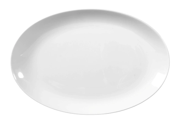 Auf dieser schlichten, ovalen Platte lassen sich Fleisch, Aufschnitt, Gebäck, Snacks uvm. schön anrichten und servieren. Die Porzellan Platte ist in den drei Größen 28 cm, 31 cm und 35 cm verfügbar. Sie ist backofen- und mikrowellenfest sowie spülmaschinenfest.
